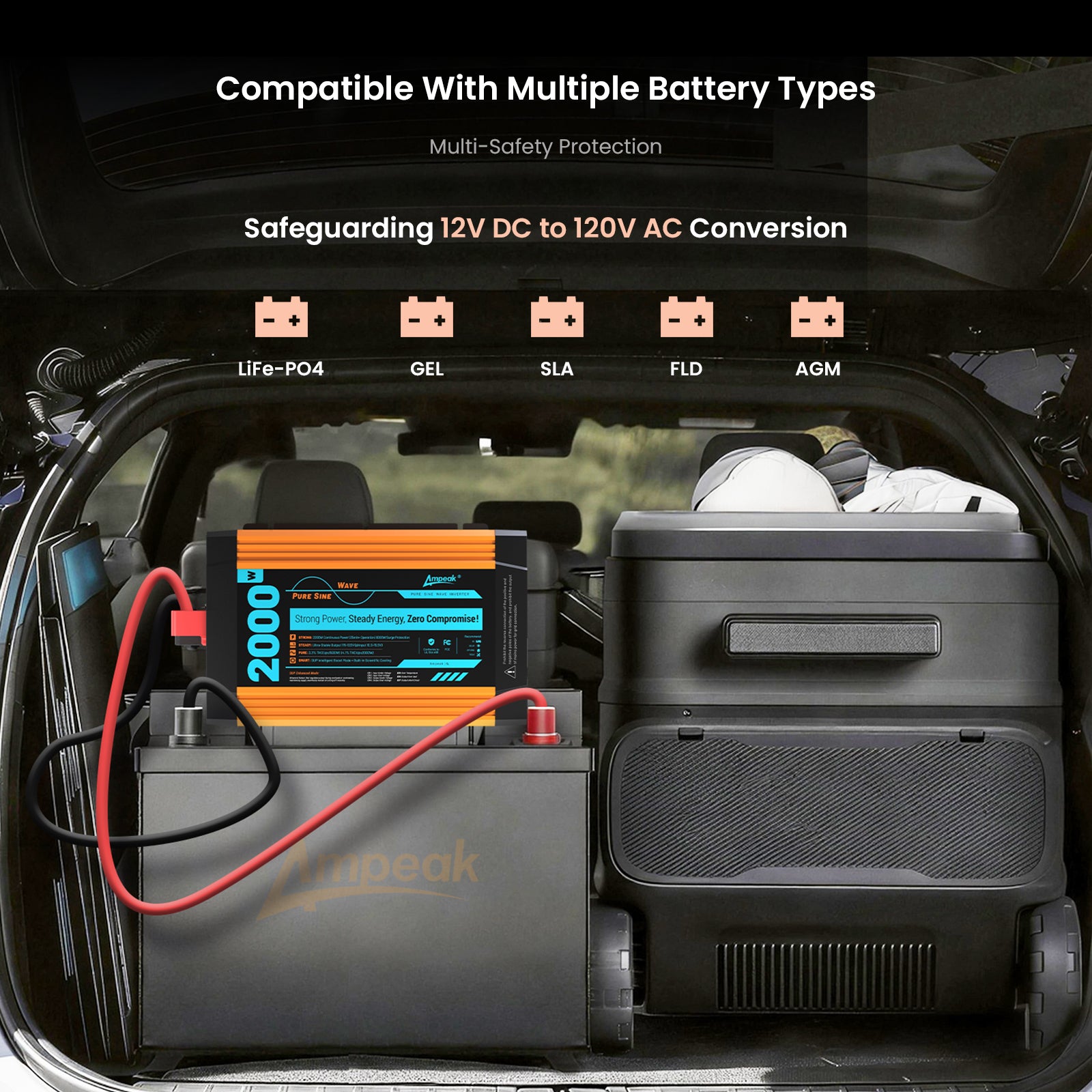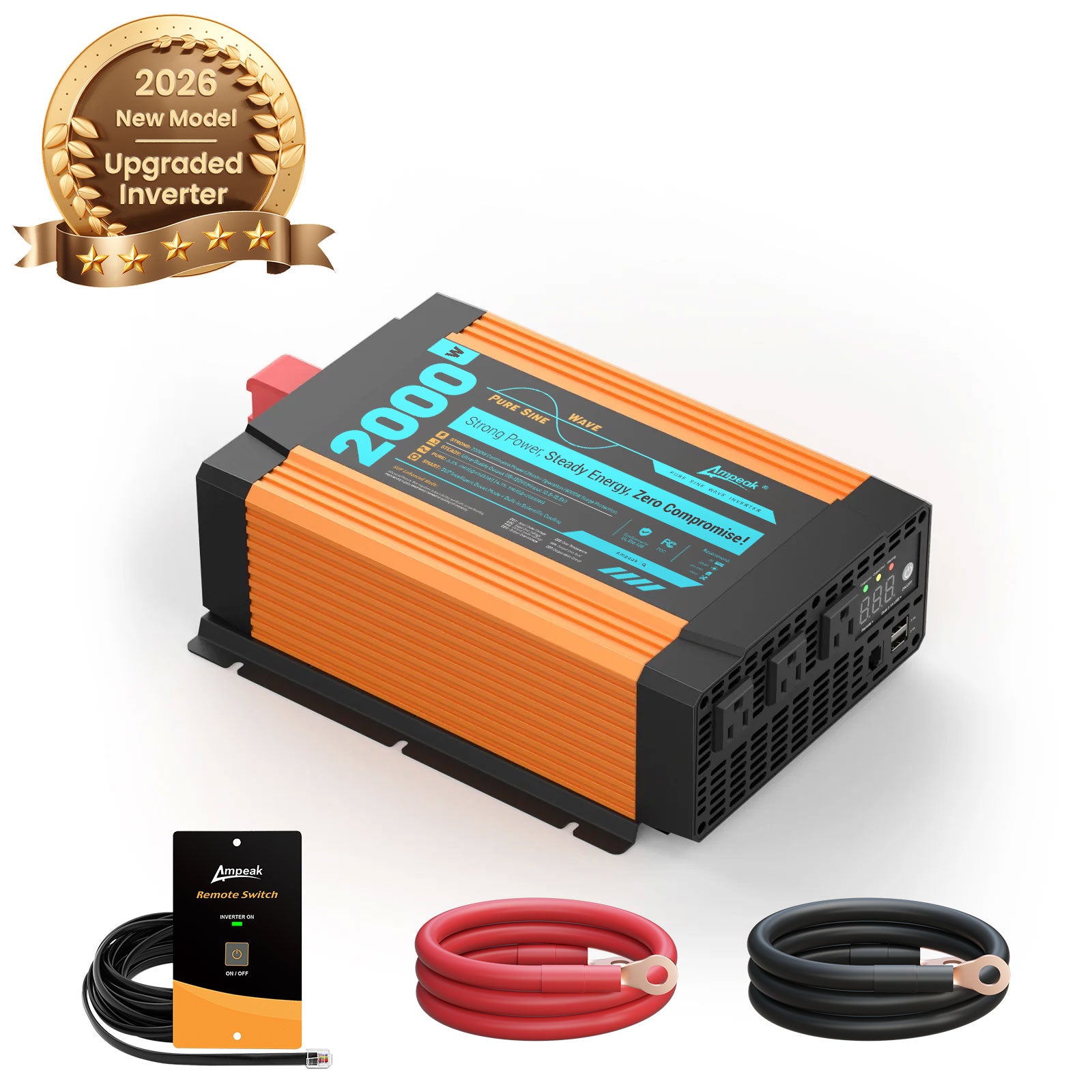 Ampeak 2000W Pure Sine Wave Inverter | 12V to 110V Converter for RV, Truck, Home & Solar