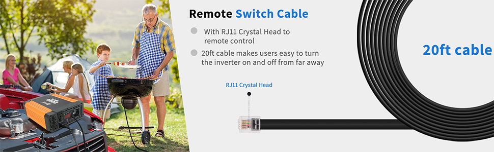Remote On/Off Switch with 10ft CableAmpeak AC Power Inverter Remote On/Off Switch is perfect for Ampeak Pure sine wave 1200w/2000w/3000w Modified sine wave 2000w/1500wSimple installation and easy to use even users are far away. It is with 20ft cable and makes users easy to control the power inverter |