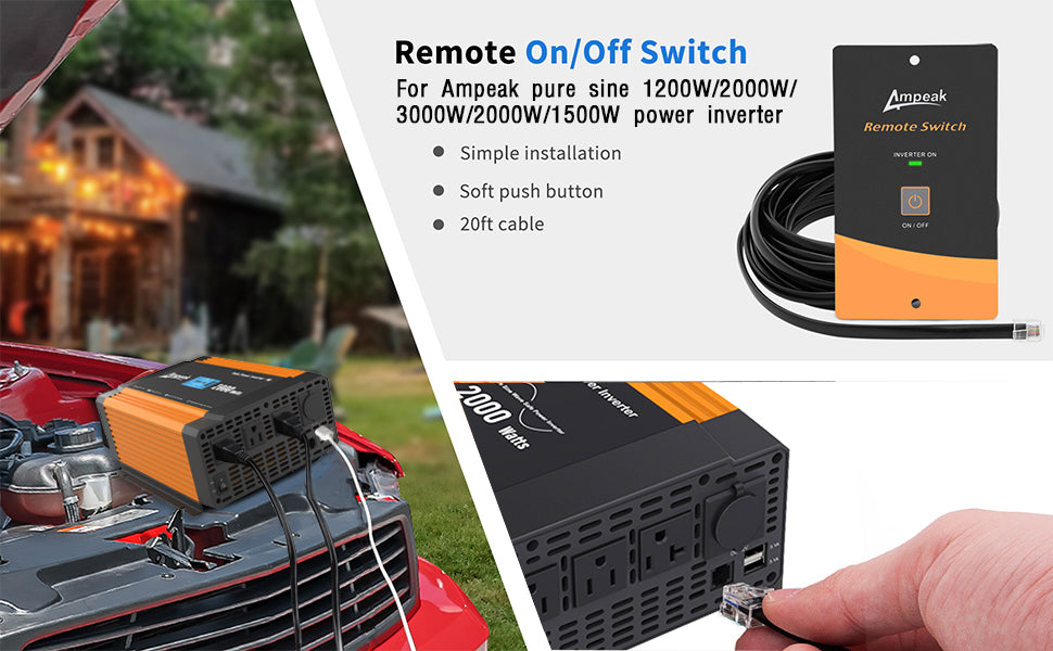 - The perfect remote on/off switch for Ampeak pure sine 1200W, pure sine 2000W, pure sine 3000W, modified sine 1500W, and 2000W high power inverters.